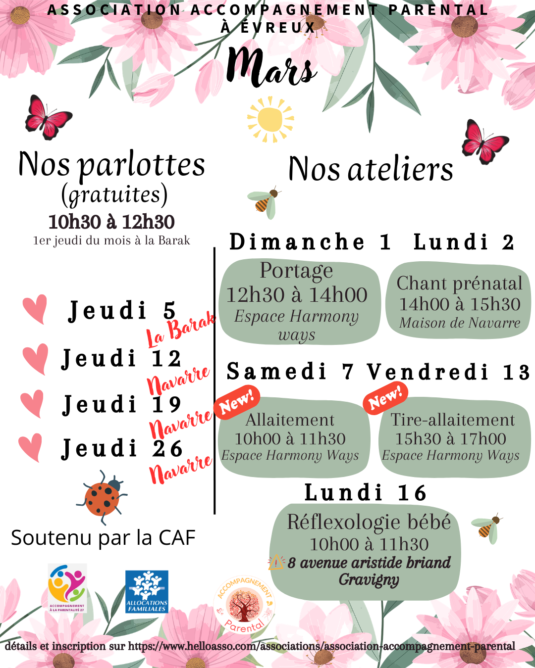 Au sein de notre association, nous proposons divers ateliers accessibles pendant la grossesse et après. Ces ateliers sont tout à fait compatibles avec un nouveau-né. Vous pouvez donc offrir un bon cadeau pour que la jeune maman se rende à l’atelier de son choix, au moment où elle le souhaite. Elle pourra ainsi apprendre à le porter en écharpe, obtenir des informations sur le sommeil, s’initier à la langue des signes, et bien d’autres encore. Pour celles qui ne reprennent pas le travail après le congé maternité, cela peut-être un moyen de sortir de chez soi et de voir du monde, pour ne pas se sentir trop seule car on sait combien ce sentiment peut vite nous envahir quand on s’occupe seule d’un enfant toute la journée.