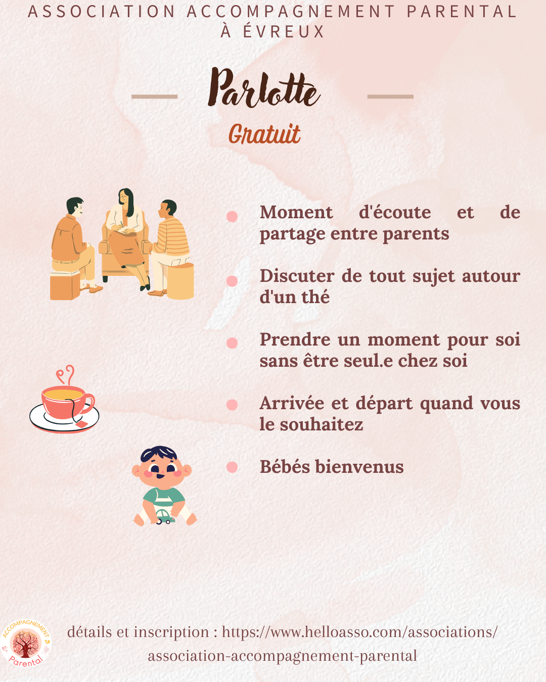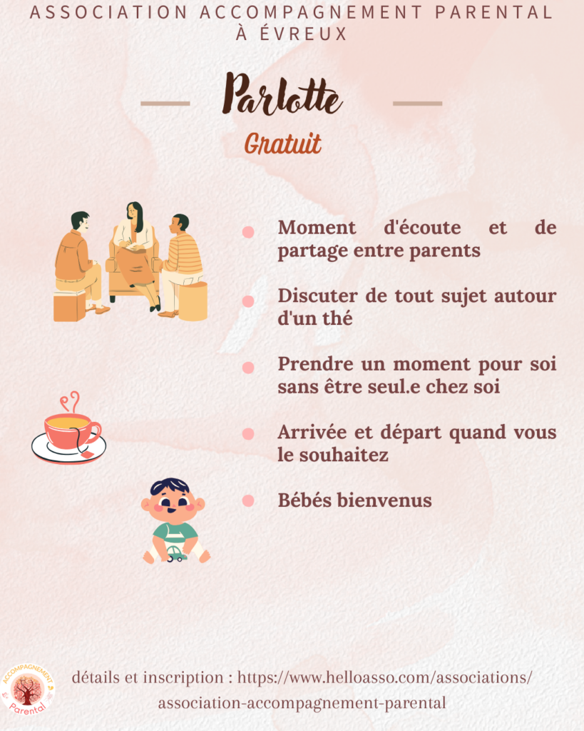 Nous vous proposons des rencontres « Parlottes » pour lesquelles Nos intervenantes vous accueillent seule ou en duo.